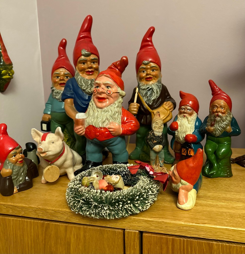 Jag har mest packat upp våra tomtar. Vi har ju rätt mycket så varje år sorterar jag bort en del som kommer att säljas. Det tar lite tid men måste göras. En del är nu nerflyttade till källaren där jag fotar allt som jag sedan säljer. Några stannar… andra skulle nog tycka att många stannar😂. Svårt att bestämma. Vi har ju samlat tomtar i alla år.