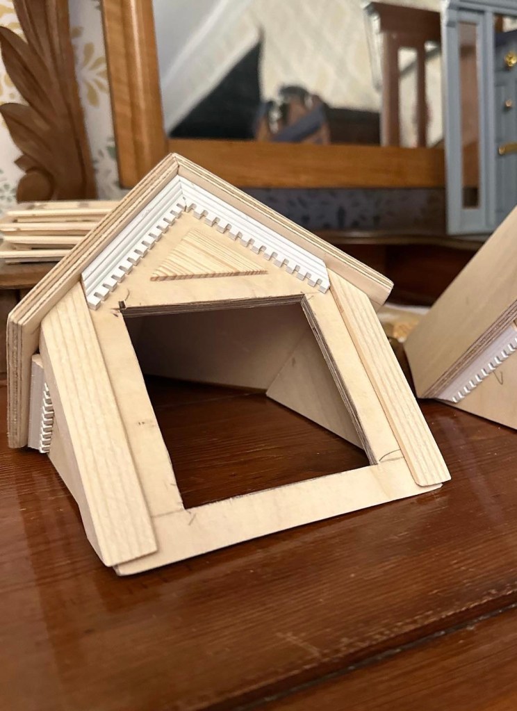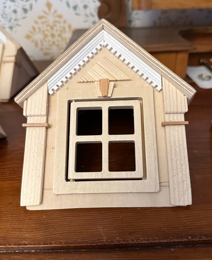 Denna veckan har Maths pysslat med takkuporna. De kommer att bli så fina. Han har gjort så fina detaljer på dem. Tänk vad en del kan. Nu har han börjat måla dem. Grunden är vit sen kommer det att bli annan färg på detaljerna. Vi har inte bestämt ännu vilken färg. Utan det får vi se.
