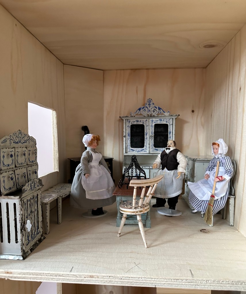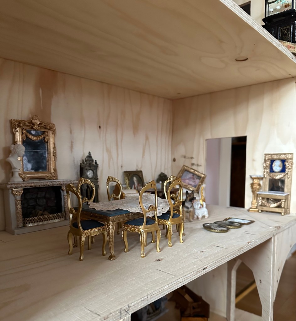 Nu ska jag plocka ut allt ur huset. Vi har bestämt hur väggar ska sitta och trappor ska gå. Möblerna åker ner i lådor. Kanske det blir samma möbler som kommer upp sen när det är dags och möblera men inte säkert. Vi har ju en del att välja på. Jag ska börja kolla hur vi gör med elen och vad vi ska ha för golv och tapeter. Det blir kul. Jag väntar på fint toalettbord som jag har köpt av Lena Inger Almstrup Jensen. Hon säljer många fina miniatyrer. Så man lär nog ändra många gånger innan man är nöjd.