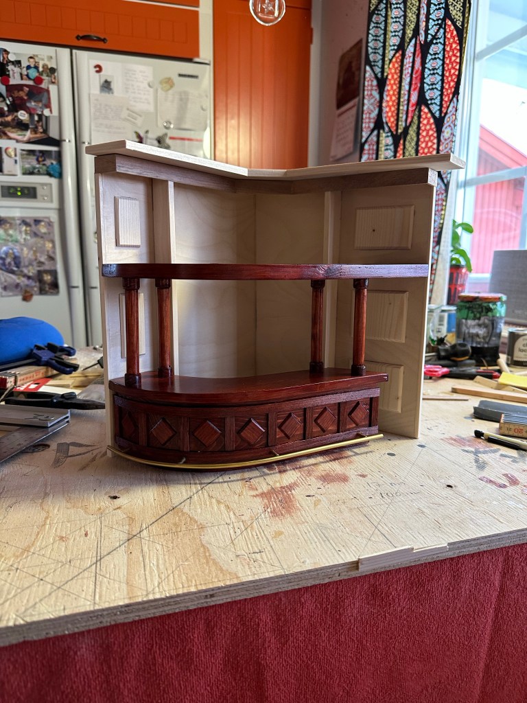 Maths har fått en ny idé. Han ska bygga hyllor som ska sitta på väggen bakom bardisken. Så här mäts, sågas och byggs ihop. Det ska bli en hörnhylla som går längst hela väggen bakom bardisken. Så nu är man nyfiken igen på hur det kommer att bli. Allt är så spännande för det händer något hela tiden. Här är lite bilder på hur han gör så ni kan få en idé om hur det kommer att se ut.