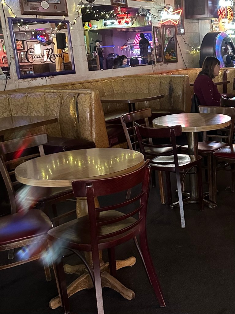 Vi har gjort Ruidosos city och kollat affärer och varit på en bar och tagit en öl. Barens inredning och allt däri härstammar från 50-talet. Man hamnar direkt i en bar där det är livemusik och ett litet dansgolv, man känner igen det från amerikanska filmer.