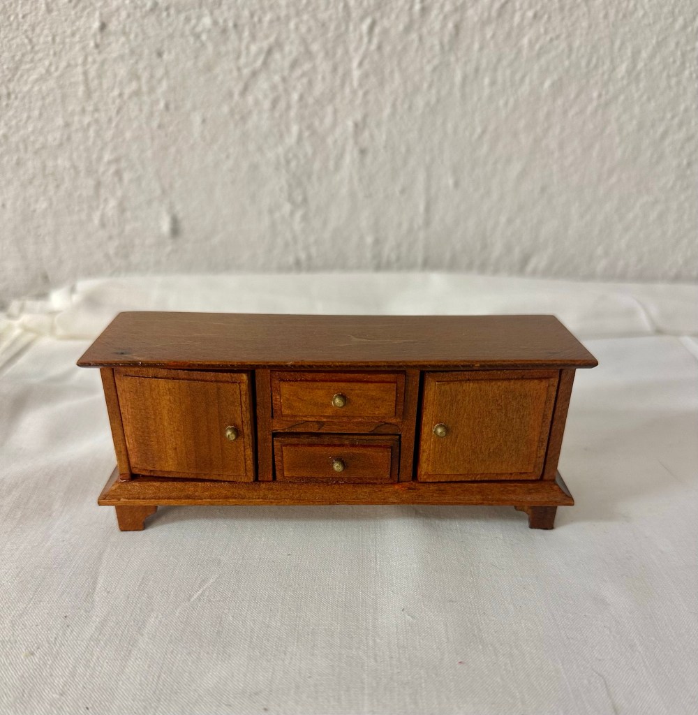Har fått en del möbler med andra köp jag gjort, som jag troligen inte kommer att ha i dockskåpet. För det ena är en affärsdisk och en monter till att ha i en affär. Det är även ett fint sidebord som troligen inte kommer att passa in. Men man kan aldrig veta säkert. Så ännu så länge behåller jag dessa möbler.