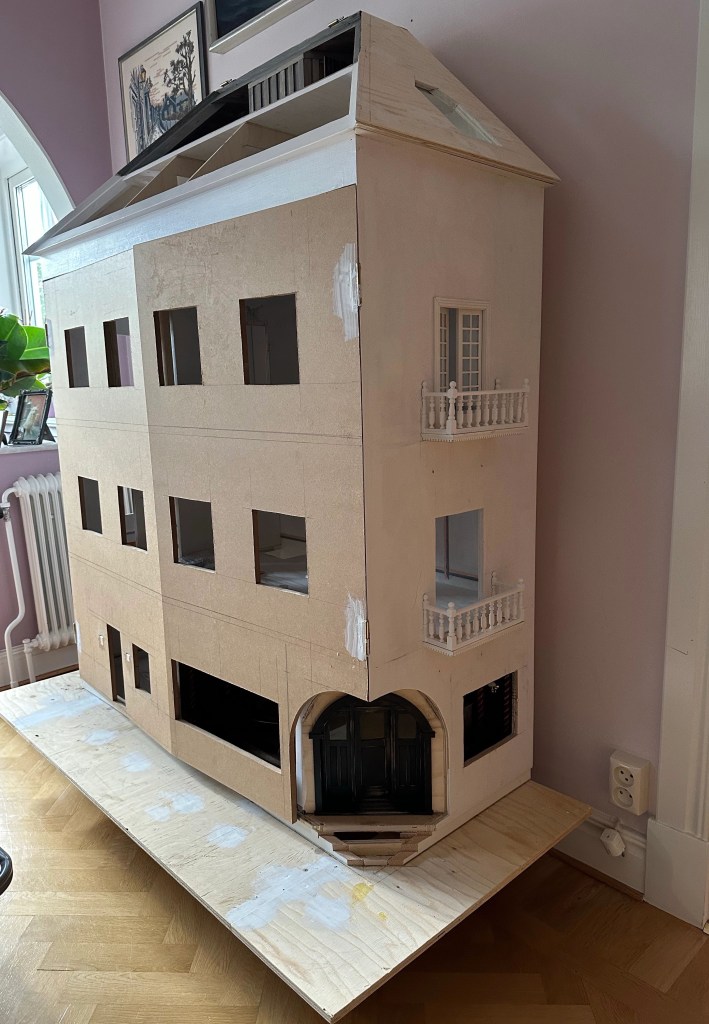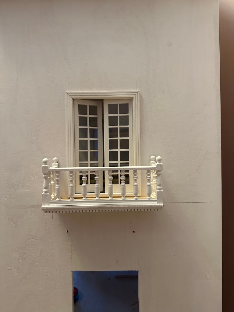 Efter att balkongerna var klara försvann Maths ut i garaget igen. Medans Maths höll på ute i garaget och slipade och sågade, fick jag paket från https://miniatyrskatt.com/diy-gor-det-sjalv/byggdelar-och-material/tapeter/tapet-fran-minimis-2 Alltid lika spännande att öppna paketen som kommer från Miniatyrskatt. Detta innehöll tapeter till salongen och sovrummet. Det var också två ljusstakar till puben som Maths får koppla in.