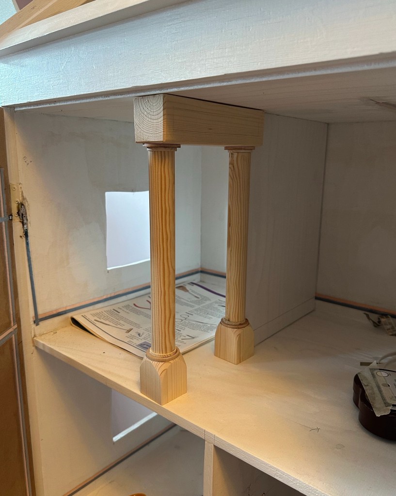 Nu börjar det bli fin planering i det rum där jag kommer att ha vårt Jugendmöblemang. Maths har tillverkat två fina pelare som kommer att passa perfekt i det rummet. Till jugendmöblemanget hör de stolar som inte var målade på baksidan. Därför har jag nu målat baksidan och tycker själv att det ser bättre ut.