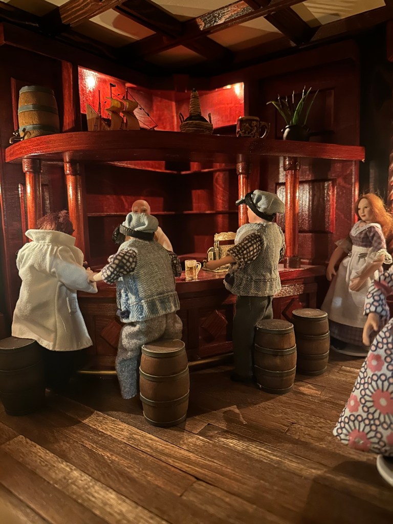 Vår pub är ju nästan färdig. Den är belägen på bottenplanet i vårt hus. Där tar Carl och Gustav sig en öl efter allt arbete på huset. De är ju inte klara ännu men väl värda en paus efter allt jobb som de lagt ner på huset. De måste ju hämta krafter till nästa projekt. De vet att det snart är dags att lägga tak och precis som vi, ser de fram emot detta.