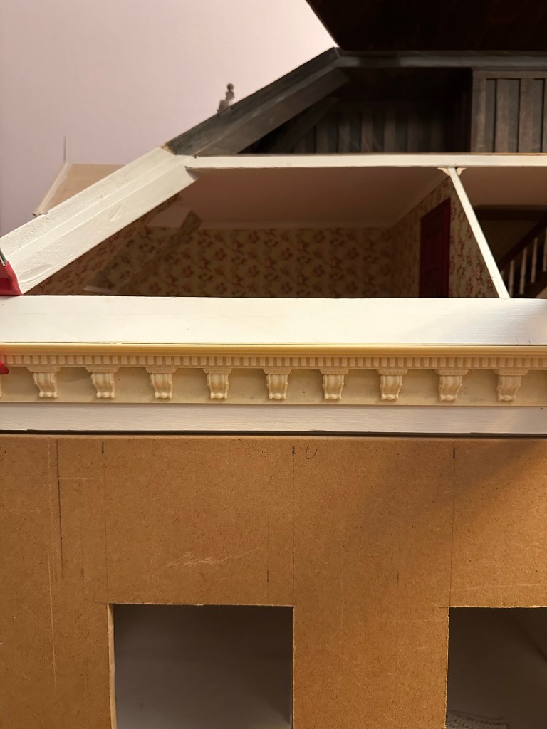 Nu har vi haft lite stiltje. Vi funderar på taket och mycket annat. Har jobbat heltid i två veckor så det har inte blivit mycket skrivet. Vi har gjort lite beställningar till huset som är på väg. Maths har satt upp dekoration på utsidan på huset under taket. Den ska ju målas när vi kommer så långt att vi har bestämt färg på husets utsida.