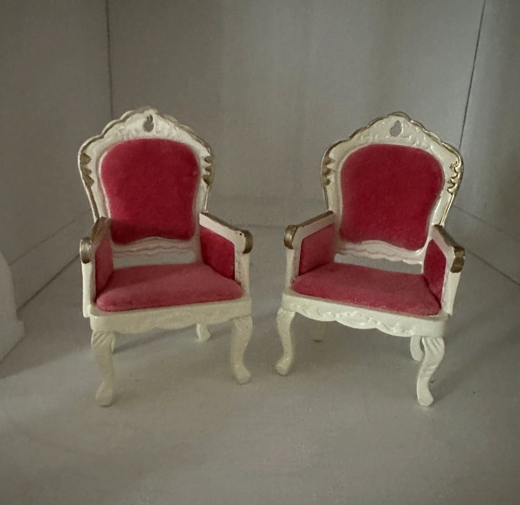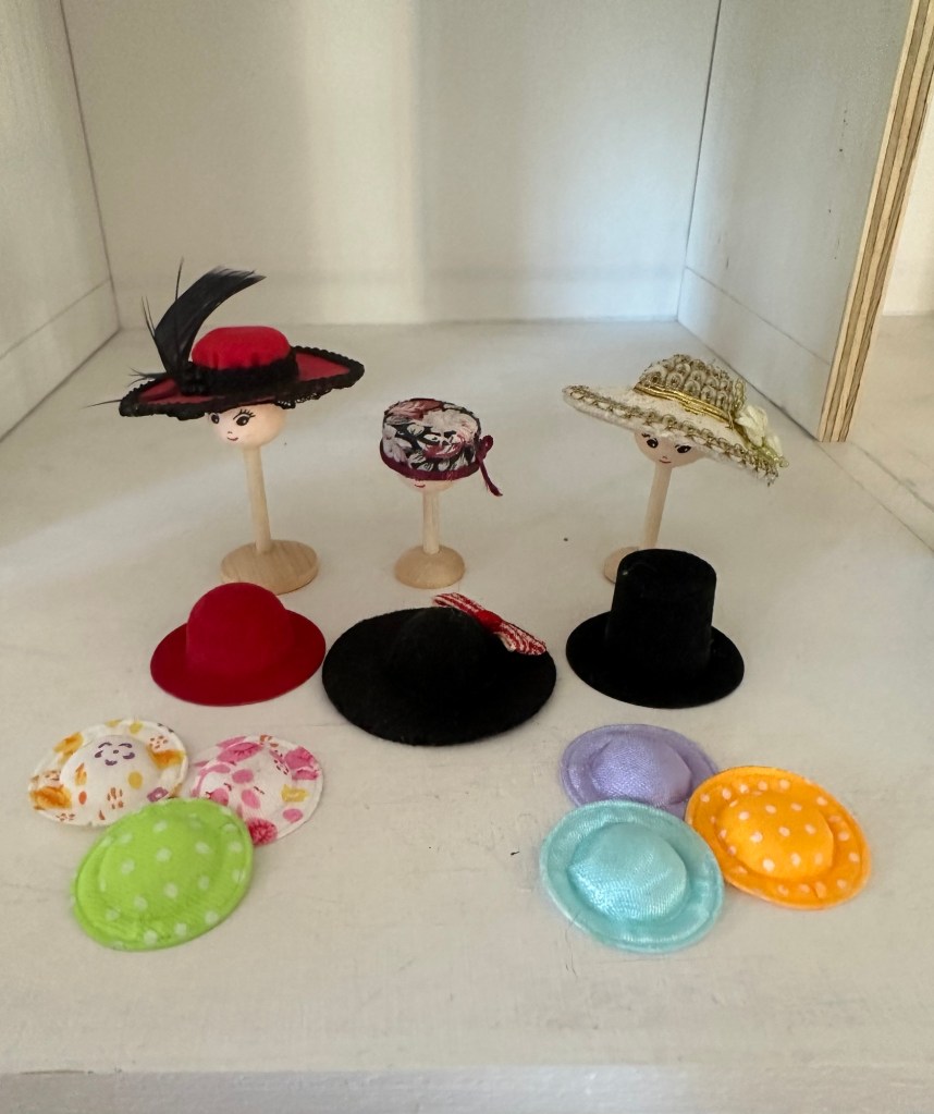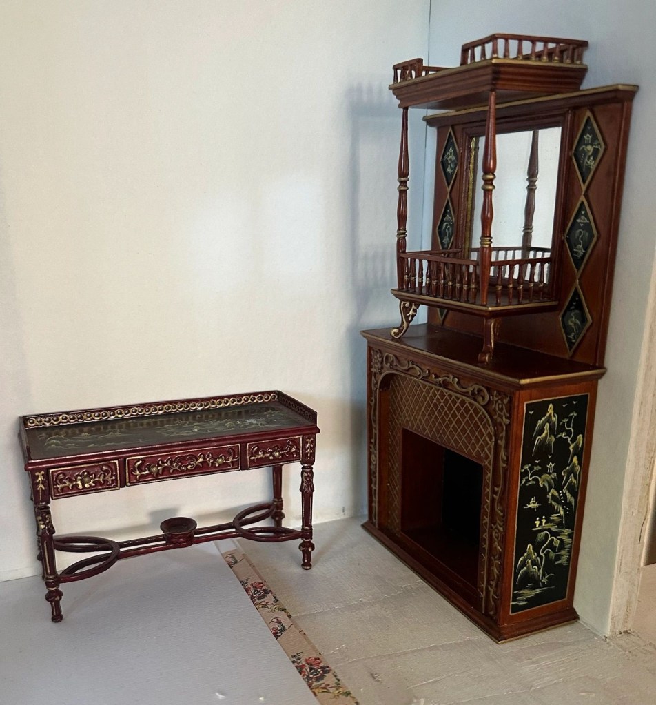 Stolarna i drottning Kristina-stil har också kommit. Det har även anlänt en möbel till finrummet som hör ihop med ett annat skåp jag redan hade. Ett antal hattar och mycket mer fick jag från min fina vän i Danmark Lena Almstrup Jensen.