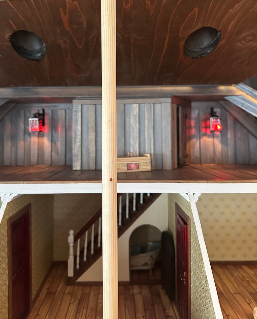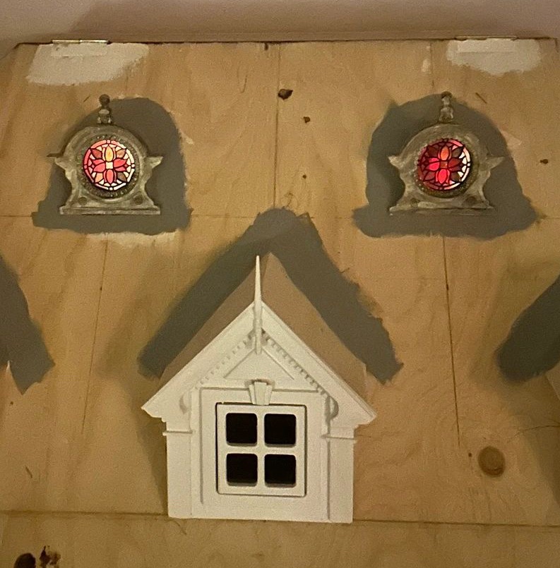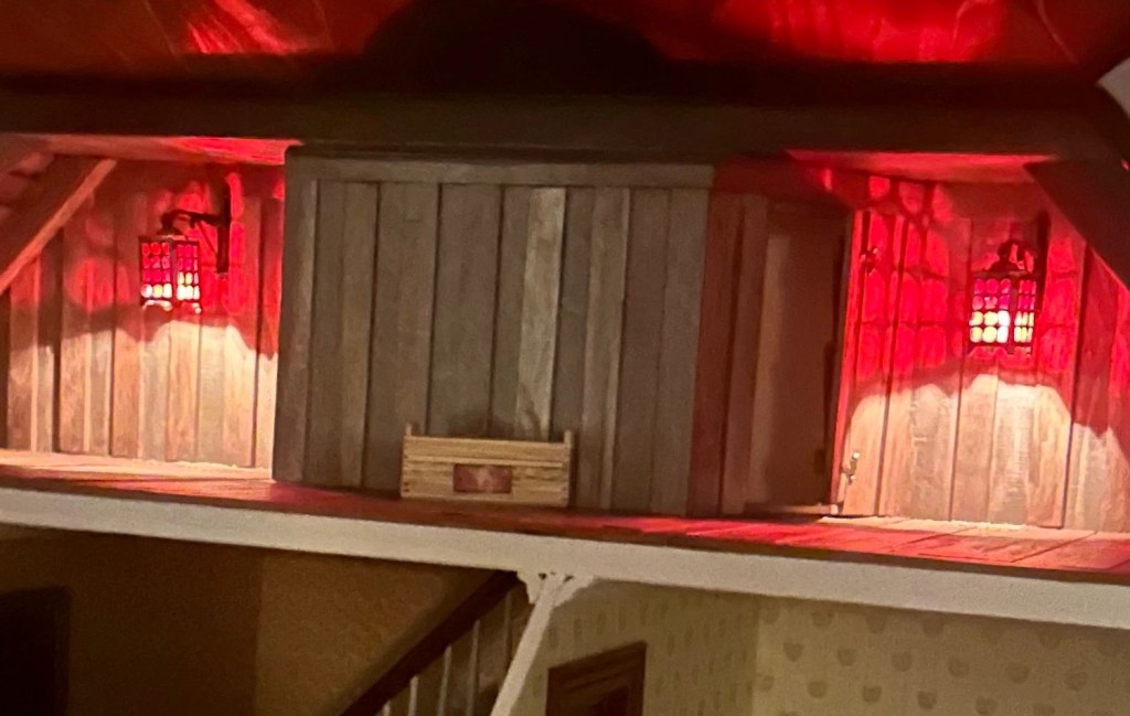 Köpte fina lanternor på Miniatyrskatt till vår vind. Maths har nu hängt upp dem o fixat med belysningen. Det var lite strul för det hade blivit fel på strömmen på vinden. Så han fick krångla innan han hittade felet. Men nu är det löst och de lyser så fint. Man kan även se hur fina vindskupornas fönster blir när det lyser på vinden.
